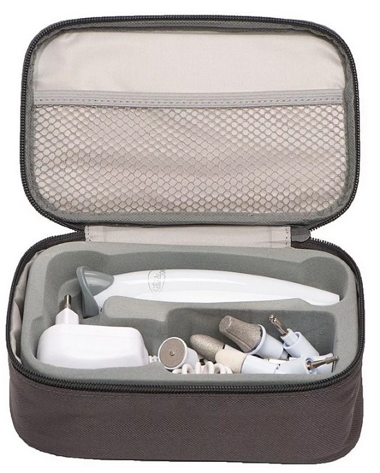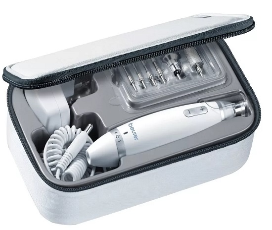 مجموعة المانيكير والباديكير Beurer MP62 قادرة على إرضاء أي سيدة تريد الحصول على أظافر خالية من العيوب في المنزل. أثناء التشغيل ، يضيء مصباح LED ساطع. تتضمن العبوة 10 مرفقات آمنة وقابلة للإزالة. إذا ضغطت بشدة عن طريق الخطأ ، فسيتم إيقاف تشغيل الجهاز. تساعد هذه الميزة الرائعة على حماية الأدمة من التلف المحتمل. يتيح لك وجود الضبط السلس ضبط الحاجة إلى سرعة الجهاز بشكل مستقل. من غبار الأظافر ، الذي يتراكم حتماً أثناء عملية تجميل الأظافر ، يساعد الغطاء الواقي. نصائح عالية الجودة مصنوعة من الياقوت ، وهي مناسبة للأشخاص الذين يعانون من مرض السكري. يسمح لك مخروط الياقوت الخشنة الحبيبات بإزالة مسامير اللحم الكبيرة أو الجلد المتقرن نوعيًا وبدون ألم. الفوهة المطلية بورق الصنفرة رائعة أيضًا مع هذا. يتم إرفاق حقيبة مصغرة بالجهاز ، حيث يمكنك تخزين الجهاز والفوهات. أثناء التشغيل ، لا يحدث التصميم عمليا ضوضاء.