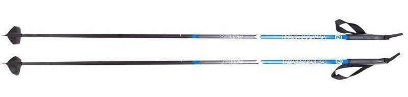مادة العصي خفيفة جدًا وصلبة. يحتوي المقبض البلاستيكي على حبل قصير ، بفضله يتم تثبيت العصي على اليد. لا يسمح لك الشكل الاتجاهي للقدمين بالسقوط من خلال الثلج.