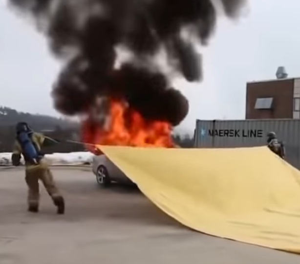 يتم وضع بطانيات الحريق في أغطية.
