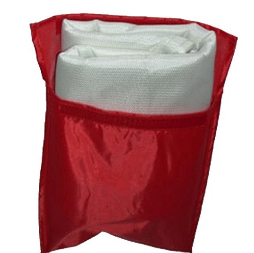 البطانية المقاومة للحريق مصنوعة من نسيج السيليكا. تم تصنيع العبوة على شكل علبة حمراء زاهية مع حلقتين لسهولة وضعها على دروع الحريق. يظهر للتطبيق في محطات الوقود والمستودعات الصناعية.
