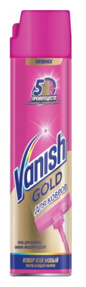 تم تصميم هذه الرغوة خصيصًا لإزالة البقع الصعبة. عندما لا يمكن للعلاج التقليدي أن يتأقلم ، سيساعدك فانيش جولد أكتيف فوم. بمساعدة هذا المنتج في وقت قصير يمكنك التخلص من أشد أنواع التلوث. للقيام بذلك ، يجب وضع الرغوة على السجادة ، وتوزيعها بالتساوي بقطعة قماش مبللة أو إسفنجة. سوف تخترق الرغوة ألياف السجادة وبالتالي تدفع الجزيئات الملوثة للخارج. بعد ذلك ، ما عليك سوى تنظيف السجادة بالمكنسة الكهربائية. عند الانتهاء من العمل ، سيصبح المنتج نظيفًا ، وستعود الألوان إلى سطوعها السابق.