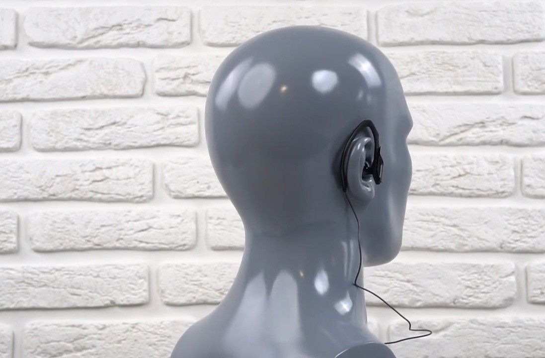 - وسائد الأذن على شكل حشوات ، لها إبزيم آمن خلف الأذن ؛