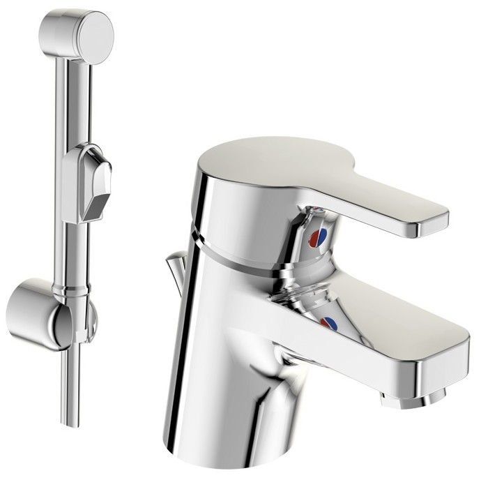 حنفية مغسلة ذات ذراع واحد مع دش صحي بتصميم موجز ومناسب للحمامات الصغيرة أو الحمامات المشتركة. هذا النموذج يجعل إجراءات النظافة أكثر متعة وملاءمة. يختلف الدش اليدوي عن الدش المعتاد بوجود صمام إغلاق على مقبض علبة الري. يمكن استخدامه لغسل الحوض وصينية الحيوانات الأليفة وأي حاويات. يمكن أن تعمل أيضًا بمثابة بيديت.
