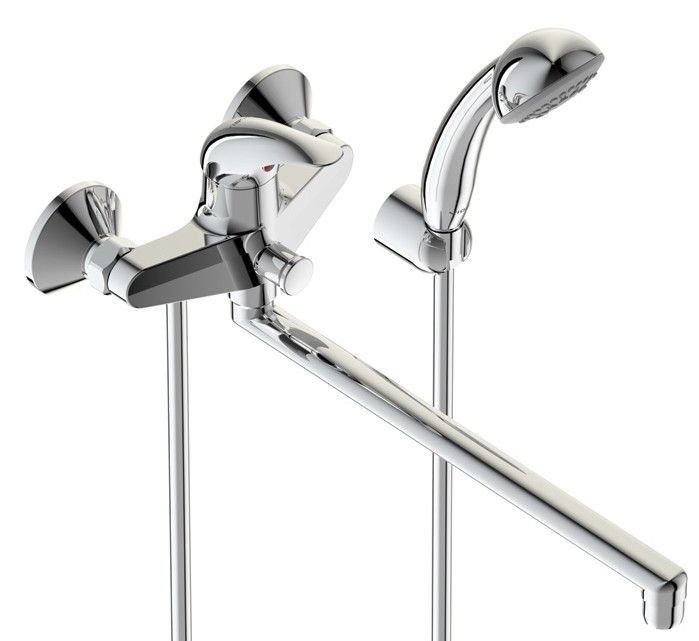 خلاط عام بمقبض طويل (32 سم) بذراع واحد. تم تجهيز الحفرة بجهاز تهوية Perlator. يتم تبديل الدش يدويًا باستخدام مفتاح سيراميك ألماني الصنع. بالإضافة إلى ذلك ، الخلاط مجهز بنظام توفير المياه.