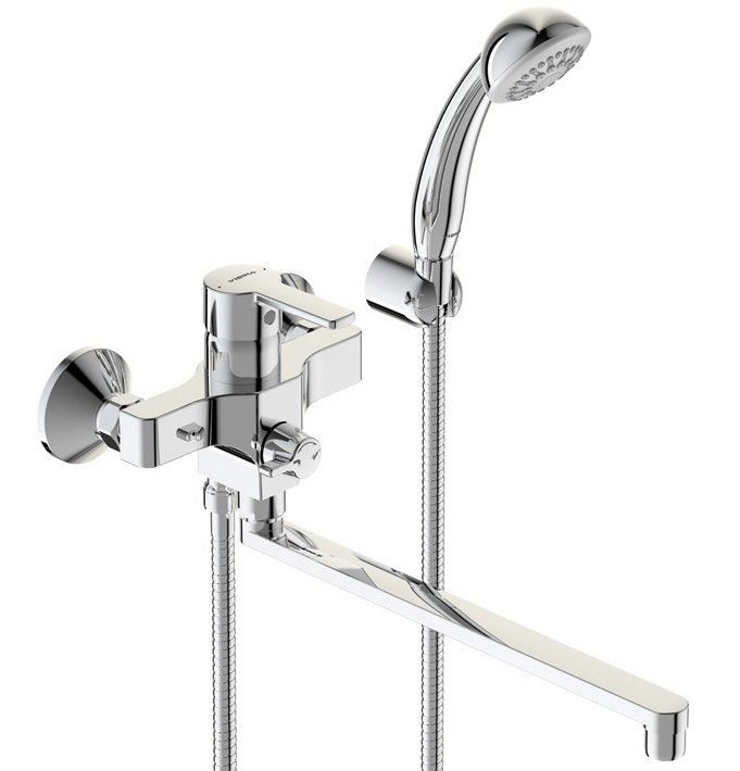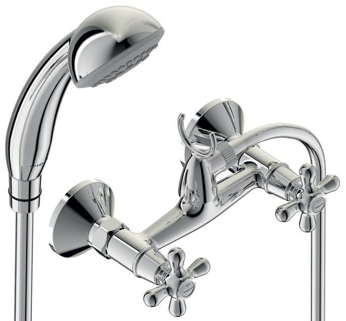 خلاطة أنيقة ذات شكل كلاسيكي ومثبتة عموديًا بصمامين. تسهل اللامركزية على شكل حرف S. التوصيل بالأنابيب. يضمن جهاز التهوية Cascade أن تدفق الماء مشبع بالهواء. تتميز علب الكرنك الخزفية بزاوية دوران تبلغ 1800، مما يبسط ضبط درجة حرارة الماء ويجعلها دقيقة للغاية. رأس الدش متصل بالحنفية ، بينما يتم تضمين حامل الحائط أيضًا.
