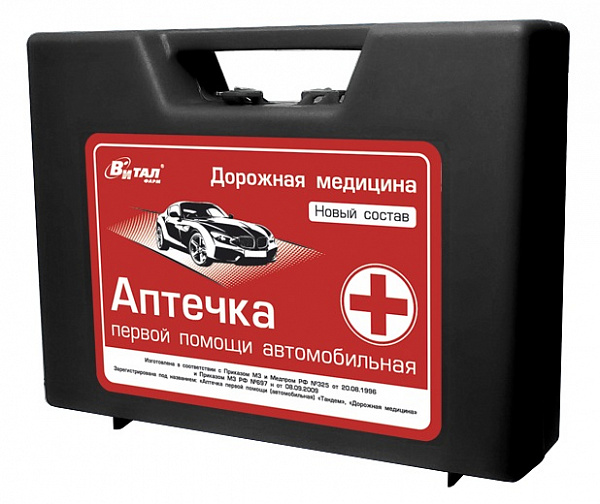 تم تصميم العينات السابقة لمساعدة ضحايا الحادث ، ولكن هنا ، يمكن استخدامها في حالة الإصابة أثناء إصلاح السيارة. التركيبة لا تشمل أي أقراص. يفسر المصنعون ذلك من خلال حقيقة أنه في ظروف حجرة القفازات في السيارة ، من المستحيل توفير الظروف المثلى لتخزينها.