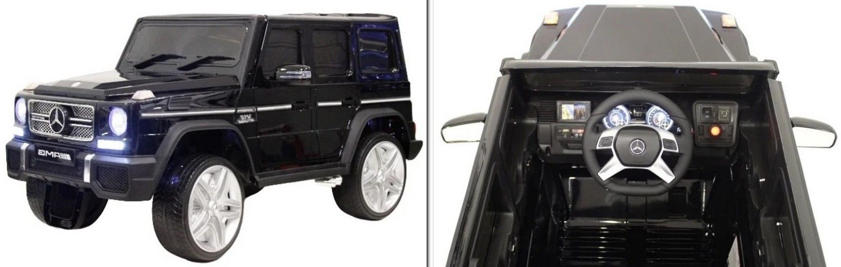 يتوفر الطراز المفتوح ذو البابين باللون الأبيض والأحمر والفضي والأزرق والأسود. مناسب للفتيات والفتيان. أما بالنسبة للإلكترونيات والإمكانيات المرتبطة به ، فهي متطابقة تمامًا مع تلك التي يمتلكها الطراز السابق - مرسيدس بنز "G65 AMG 4WD". الفروق بين الماكينتين الكهربائيتين هي التصميم والتكلفة والمعلمات العددية ومواد العجلة.