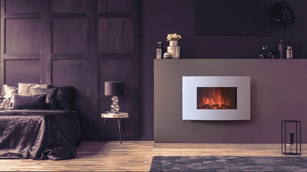 نموذج لمدفأة كهربائية معلقة من نوع مغلق ، تعمل بواسطة شبكة. جهاز أنيق وجميل يخلق الراحة والرفاهية المنزلية.