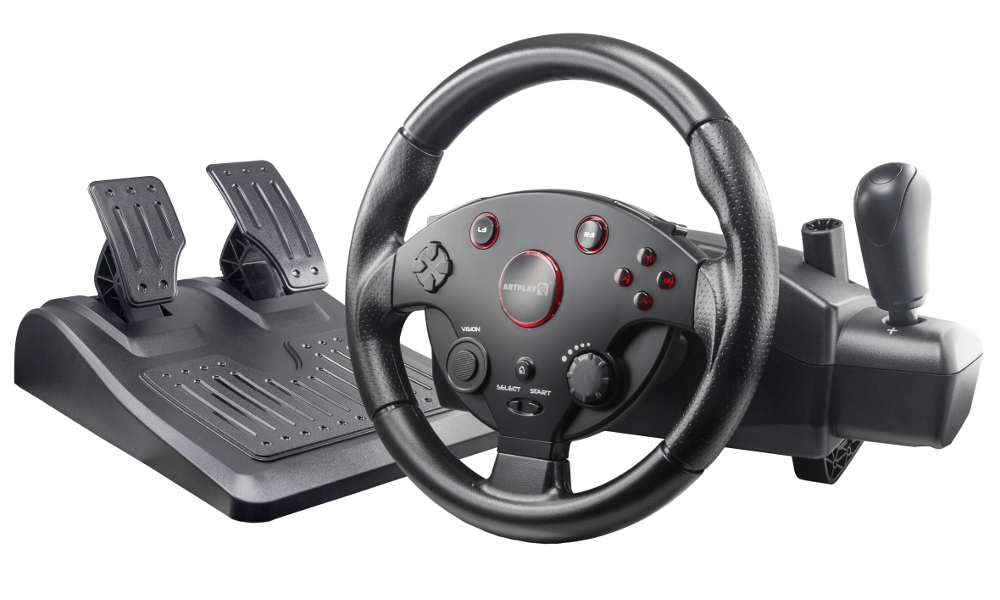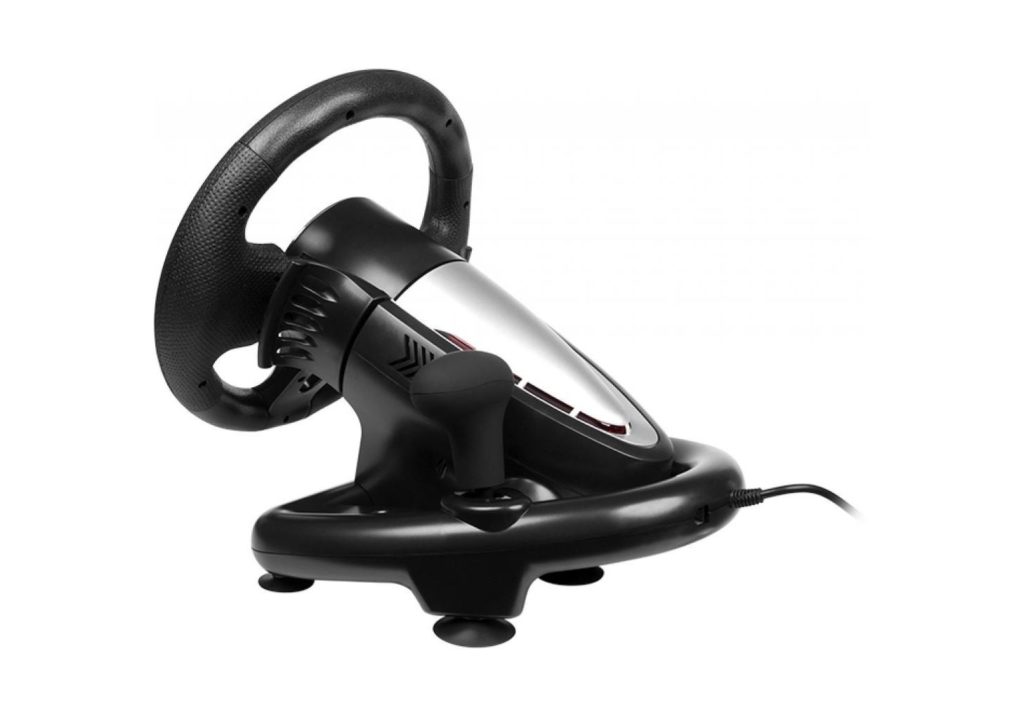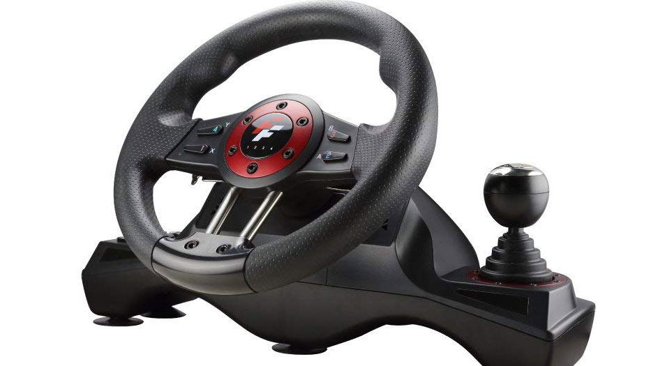 سعر منخفض نسبيًا (5000-7000 روبل) مع فرص وافرة. العجلة المطاطية بقطر 24.5 سم وزاوية دوران 270 درجة متصلة بجهاز كمبيوتر شخصي أو Sony Playstation 3 عبر كابل USB. يتم توفير الاهتزاز للحصول على أحاسيس واقعية ، فهناك وحدة بها علبة تروس ووحدة إضافية مزودة بفرامل / غاز. هناك تثبيت قوي أثناء اللعبة ، وعدم وجود رخاوة ، وإعداد سهل ، ومظاهرة للاستجابة.