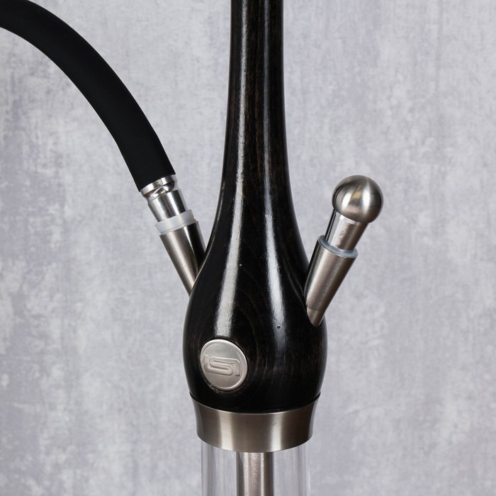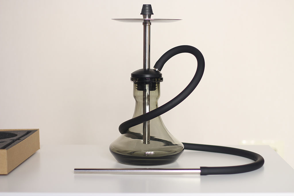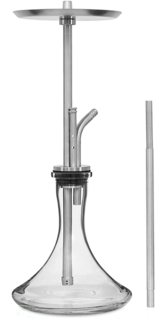 مصنوع على الطراز الكلاسيكي ومصنوع من الفولاذ المقاوم للصدأ عالي الجودة. دورقها مصنوع من الزجاج المتين ، والخرطوم مصنوع من السيليكون. بالإضافة إلى العناصر الرئيسية ، قامت الشركة المصنعة بتضمين صحن وملقط للفحم.