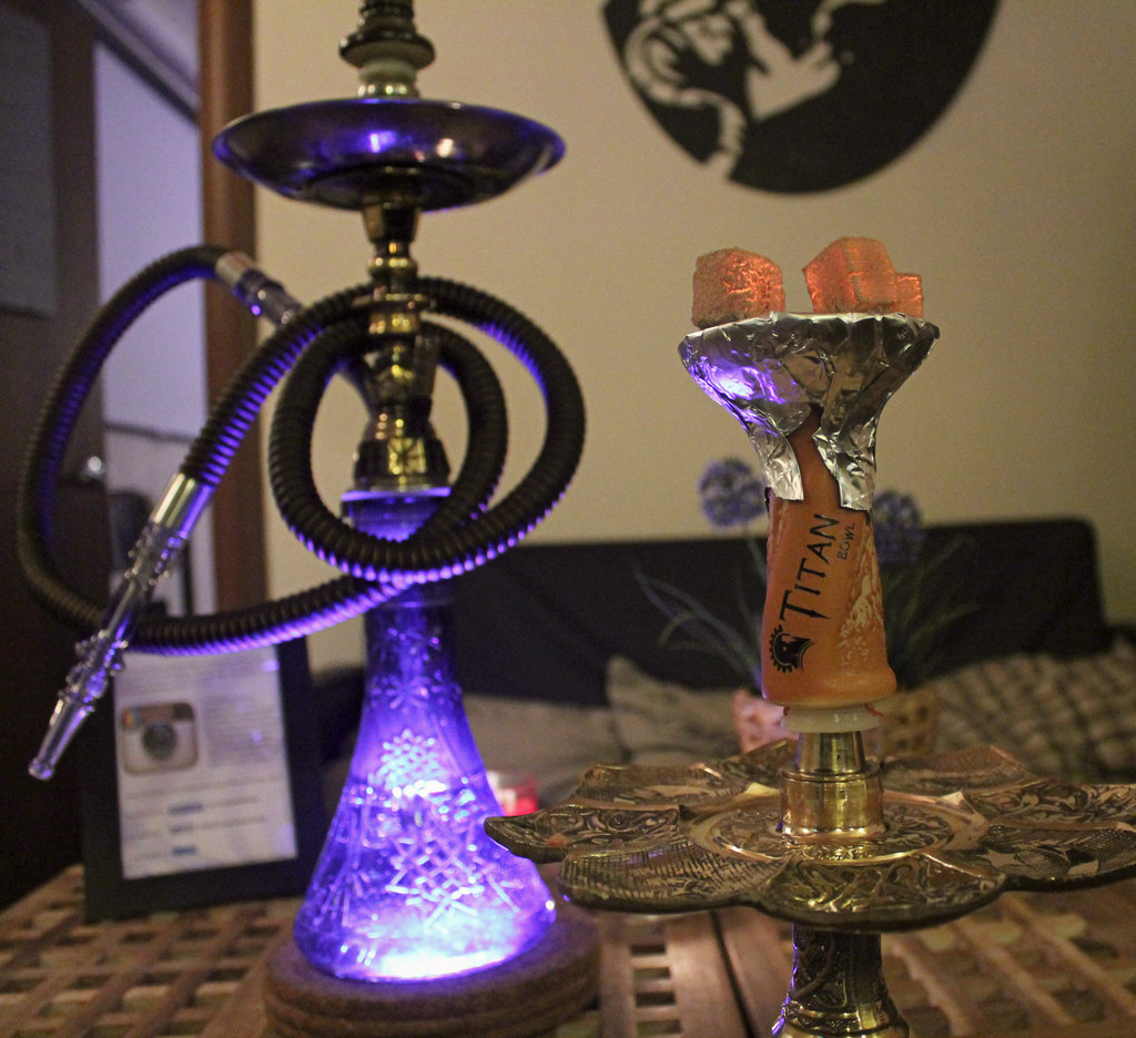 أثناء التدخين ، يتم تكوين جو مخلخ في "جسم" الجهاز ، حيث يبدأ الدخان في الارتفاع من خلال السائل عبر الأنبوب ويصل إلى رئتي الشخص الذي يدخن.