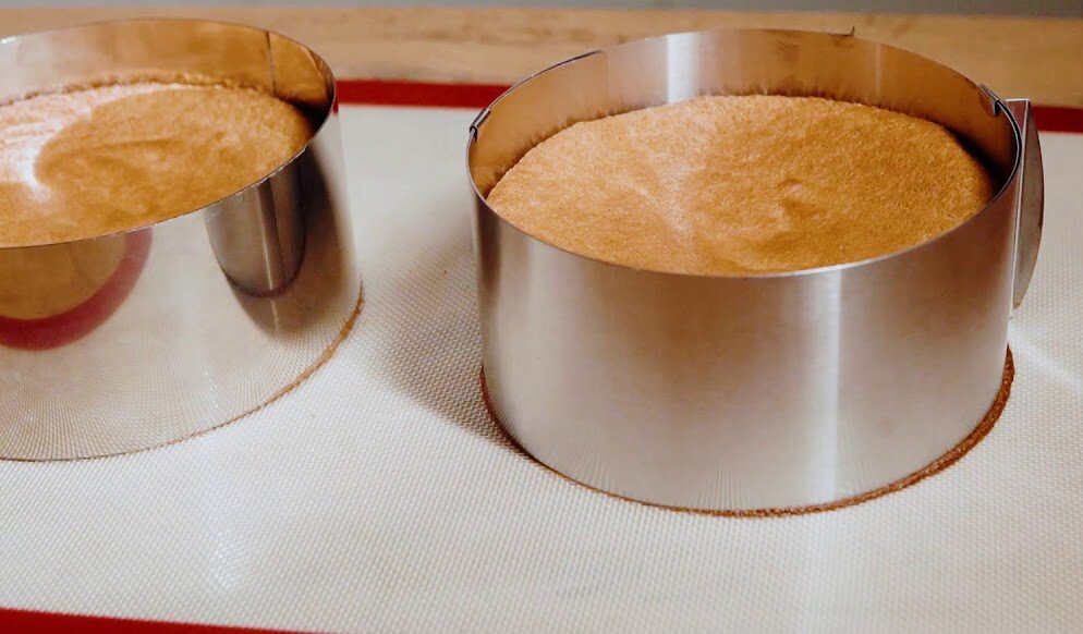عند تشكيل الكعكة النهائية وتجميعها بالكريمة وطبقة الموس ، من الضروري وضع الطبقة الداخلية بشريط حدود خلات الحلويات (سهل التصوير ، وجوانب متساوية تمامًا).