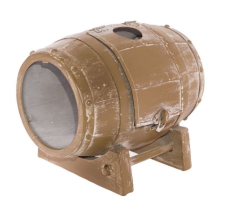 نموذج مثير للاهتمام على شكل برميل نبيذ على حامل من مصنع صيني مصنوع من المعدن ، والأجزاء الجانبية من الزجاج ، مما يسمح لك برؤية المحتويات. يتم إنزال المقابس من خلال فتحة دائرية خاصة في الجزء العلوي من المنتج. الشيء غير المعتاد هو وجود جزء مفصلي يمكنك من خلاله إخراج المقابس. يعطي تطبيق الطلاء الذي يقلد الألواح القديمة لبرميل النبيذ أصالة خاصة. يمكن طلب المنتج عبر الإنترنت مقابل 4900 روبل. سعر السهم أقل.