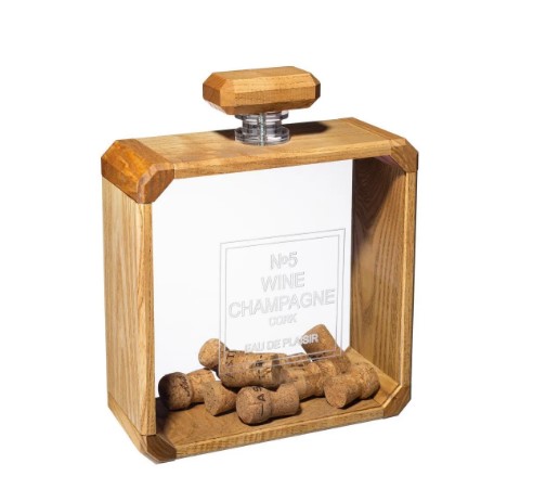 ملحق رائع للعلامة التجارية الروسية التي تنتج الهدايا التذكارية ومنتجات الهدايا ، مصنوع من الخشب الطبيعي بزوايا دائرية وزجاج أكريليك شفاف ، يكرر شكل زجاجة العطر المشهورة عالميًا. الأصالة تضيف نقش "شانيل رقم 5". خشب الرماد الصلب منغم بزيت خشب الساج اللامع ويبدو نبيلًا ومكلفًا. الجزء العلوي من الرقبة مغلق بإحكام بغطاء خشبي أنيق. عمق 10 سم وارتفاع وعرض 25 سم كل جدار يوفر سعة كافية. يتم تكديس الفلين بشكل جميل في عدة صفوف. يمكنك شراء مثل هذا الشيء مقابل 4990 روبل.