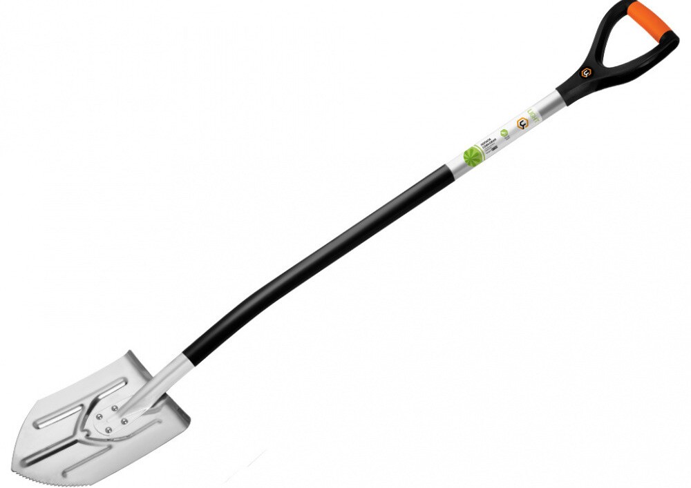 سيكون هذا النوع من المجرفة مثاليًا لحفر الأرض تحت الحديقة. أيضًا ، باستخدام الأداة ، يمكنك حفر حفرة أو حفرة. تسمح لك المادة القوية المستخدمة في التصنيع بالتعامل بسرعة مع التربة البكر. وزن المنتج 1.89 كجم.