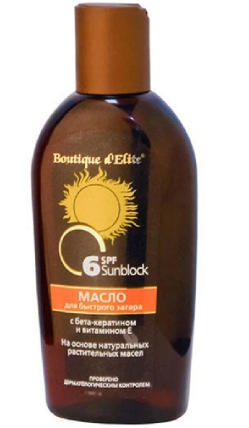 يتمتع الزيت الذي يعمل على تسمير البشرة بدرجة خفيفة من الحماية وينشط تصبغ البشرة.