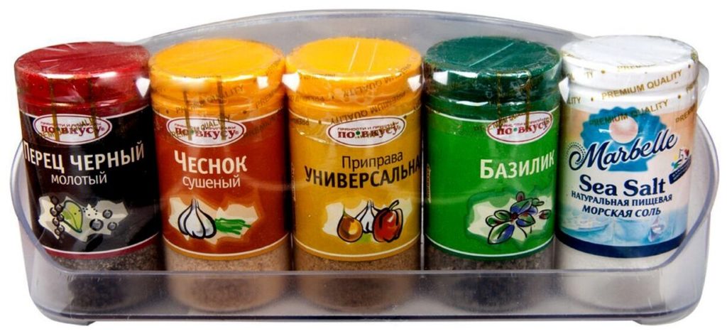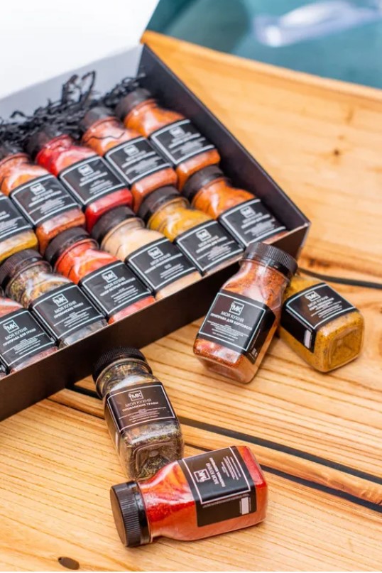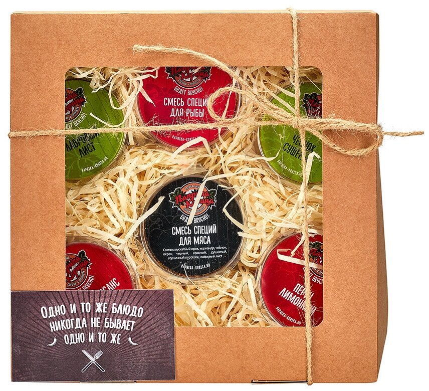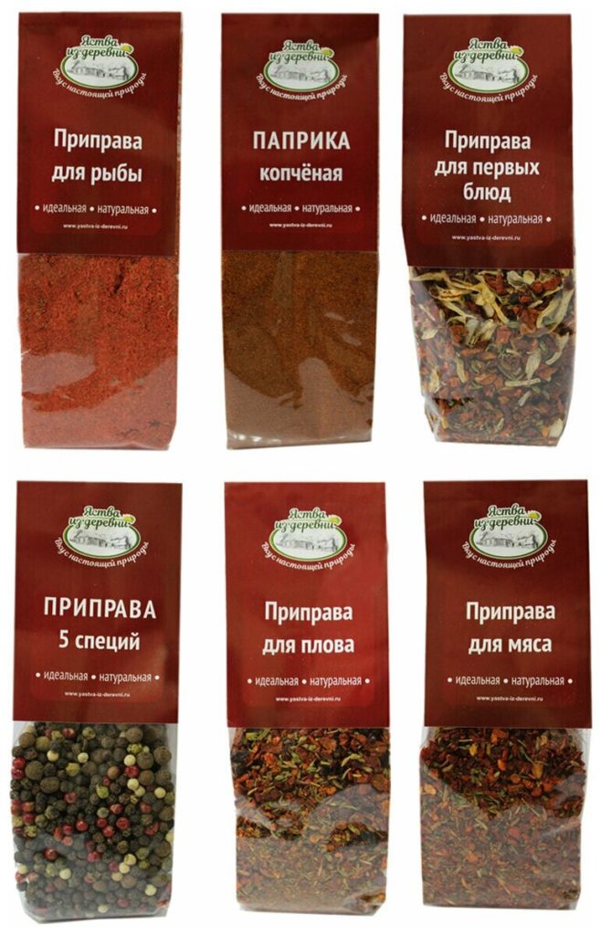تحتوي هذه المجموعة على ست عبوات: توابل للحوم ، للدورات الأولى ، للبيلاف ، للأسماك ، بابريكا مدخن ، خليط من خمسة فلفل. لا تحتوي التركيبة على إضافات ومكونات صناعية. على سبيل المثال ، تشتمل تركيبة خليط Five Peppers على أنواع مختلفة من الفلفل الأبيض والأسود والبهارات والأخضر والوردي بنسب متساوية.