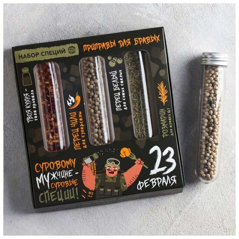 ستكون المجموعة المصممة بشكل رائع من العلامة التجارية NewStory هدية ممتازة بحلول 23 فبراير. التصميم المثير للاهتمام سيفوز بقلب أي رجل ويكون بمثابة حافز لطهي شيء غير عادي. تحتوي على ثلاث قوارير مع أغطية "فودكا" ملولبة ، 8-12 جرام لكل منها: مع الفلفل الحار والفلفل الأبيض وإكليل الجبل.