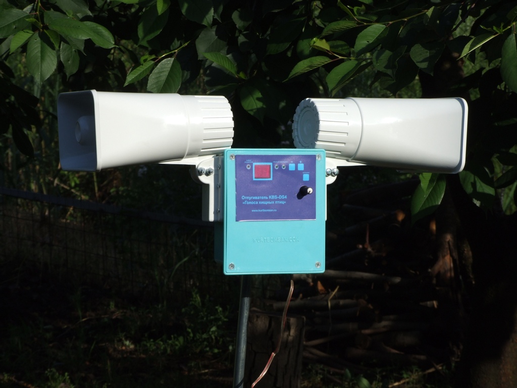 ربما يكون هذا الجهاز هو أفضل ممثل لجميع أنواع مبيدات الحشرات. إنه مجهز ليس فقط بنظام التخويف البيومتري ، ولكن أيضًا بنظام الموجات فوق الصوتية والضوء. قادرة على طرد أي ممثلين كبار لعالم الطيور. بالإضافة إلى ذلك ، فإنه يؤثر على عالم الحيوان. مجهزة بأكثر من 40 صوتًا مختلفًا. يمكن استكمال مجموعة الأصوات غير السارة للطيور ، لذلك لا داعي للخوف من أن يعتادوا على الأصوات التي يصدرها مبيد الحشرات.