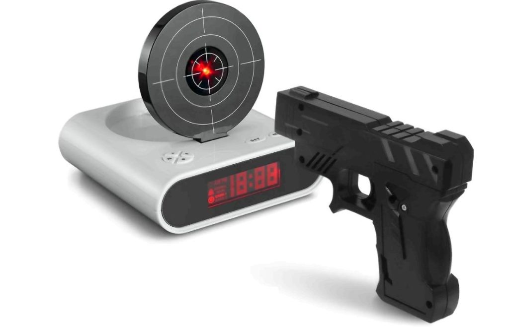 حتى الشيء الممل وغير المحبوب من قبل معظم المراهقين كساعة منبه يمكن أن يكون مفاجأة مثيرة للاهتمام إذا تم صنعه في شكل هدف يحتاج إلى ضرب بمسدس. تم إنتاج هذا المنتج بواسطة ماركة Family Shop. مثل هذه المفاجأة ستجذب الرجل الذي يرى نفسه في أحلامه كحارس رائع وهو من محبي الأسلحة الحقيقية. سيكون أيضًا محاكيًا جيدًا لممارسة مهارات الرماية ، لأنه من أجل إيقاف تشغيل الجهاز ، يجب أن تصيب عين الثور بالضبط.