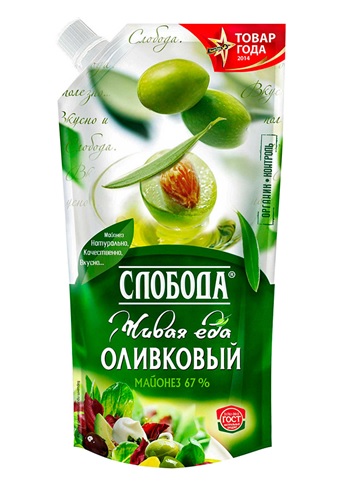 المايونيز "Provansal Sloboda" الزيتون مع نسبة كتلة من الدهون 67٪ يحتوي على التركيبة التالية: