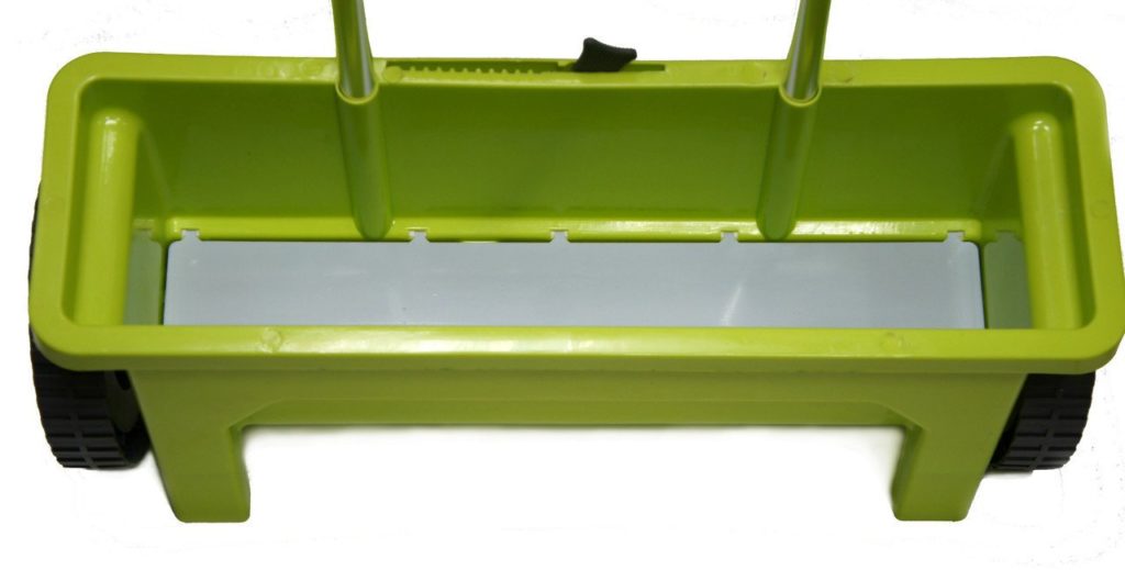 النموذج اليدوي مثالي لحديقة صغيرة. المنتج مزود بمقبض مريح وعجلات ناعمة تتحرك بسهولة حتى على الأسطح غير المستوية.على الرغم من صغر حجمها ، إلا أن التصميم بسعة 15 لترًا وعرض العمل 41 سم.