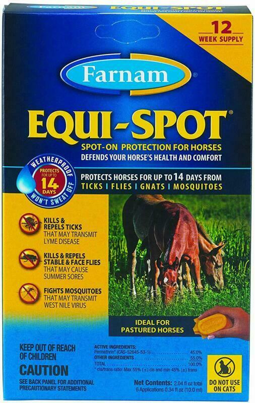 رذاذ يجمع بين طارد للحشرات ومبيد حشري.يتم استخدامه لحماية الحصان والفارس من الحشرات الطائرة الماصة للدماء. إنه فعال للخيول ذات اللون الفاتح ، ويكون خط الشعر ذو الظلال الداكنة أقل حماية.