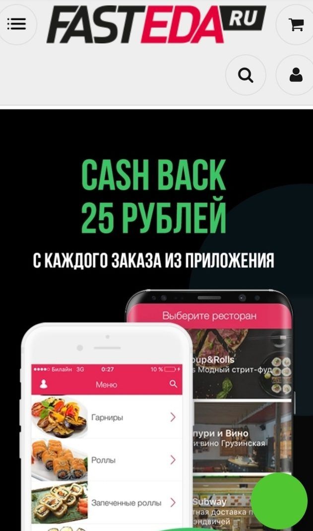 - تشمل قائمة الموقع أطباق الطعام الشعبية فقط ، دون مراعاة مبادئ التغذية السليمة ، ولا توجد إمكانية لطلب الأطباق الوطنية ، وينصب التركيز بشكل أساسي على السوشي والبيتزا.