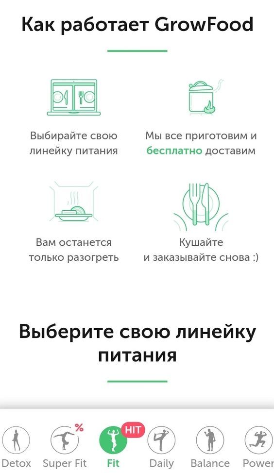 يمكن للعميل أن يختار أحد البرامج العديدة ، والأطباق التي تتكون فيها بطريقة يتم فيها ملاحظة توازن السعرات الحرارية و BJU ، حيث يتلقى الجسم الطاقة اللازمة للعمل دون الإضرار بالشكل ، على العكس من ذلك ، برنامج تم اختياره بشكل صحيح يساعد على تقليل الوزن الزائد بشرط أن يأكل الشخص حسب الخطة.