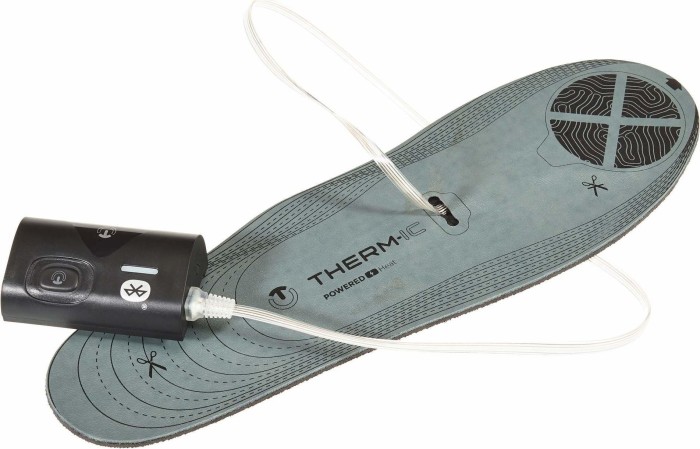الميزة والميزة المميزة والرئيسية لهذا المنتج هي القدرة على التحكم فيه عبر الهاتف الذكي. عظيم لكل من الرجال والنساء. يتيح لك تثبيت عنصر تسخين في منطقة الأصابع تغيير الحجم بسهولة. وهي متصلة بمصدر طاقة خارجي متصل بالحذاء بمشبك خاص. ويمكن أيضًا تثبيته عند الكاحل باستخدام الفيلكرو. متوسط تكلفة النعال 12950 روبل.
