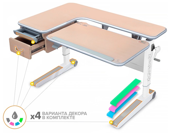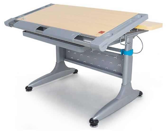 يتميز تطوير علامة تجارية مشهورة بمجموعة واسعة من الاحتمالات ، مما يتيح لك الجلوس بشكل مريح على الأرض أو سحب كل شيء إلى وضع الوقوف لشخص بالغ. يتم ضبط المعلمات عن طريق آلية رفع مدفوعة برافعة تحت الغطاء.بشكل منفصل تمامًا ، يتم إجراء تصحيح الجزء المائل تحت تأثير رفع الغاز الألماني STABILUS. بفضل هذا الحل ، سيصبح التصميم الخيار الأفضل للعب مع الأطفال على السجادة وترتيب منطقة عمل شخص بالغ.