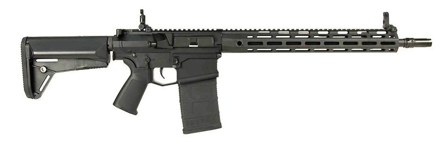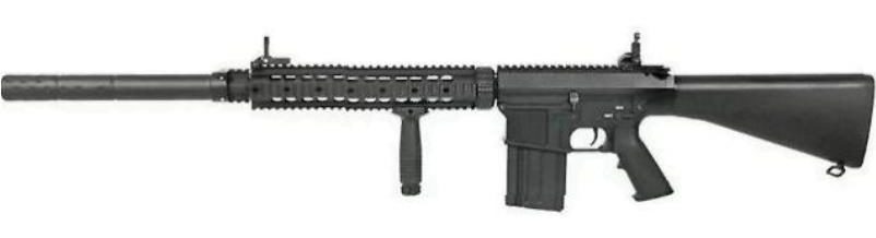 نموذج كهربائي هوائي يعتمد على بندقية SR-25. الجسم مصنوع من البلاستيك والمعدن. مزودة بمخزن لحفظ 300 كرة عيار 6 ملم. السرعة الأولية - 125 م / ث. ومن سمات هذا النموذج واقي اليد RIS. يشمل مجلة ، شاحن ، تعليمات ، بطارية.