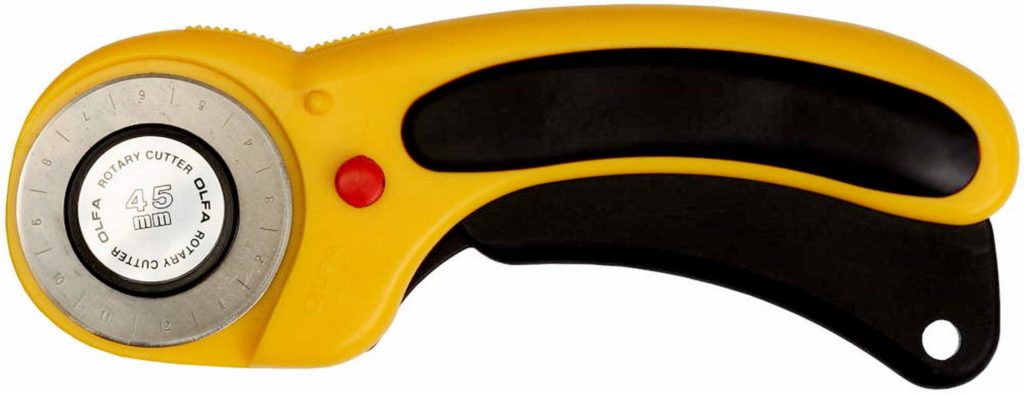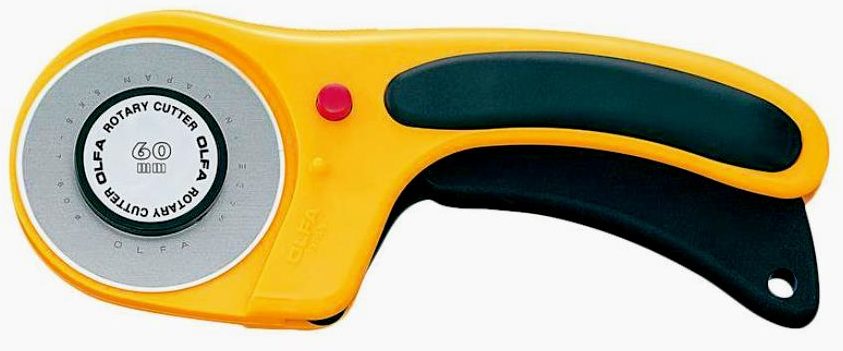 السكين مزود بأربعة أدلة تسمح لك بضبط سمك القطع ، بناءً على جودة القماش. يمكن أن يختلف عمق القطع من 5 إلى 12 ملم. النقطة نفسها قطرها 60 مم. العلبة بلاستيكية ، غير قابلة للانزلاق ومريحة في راحة يدك.