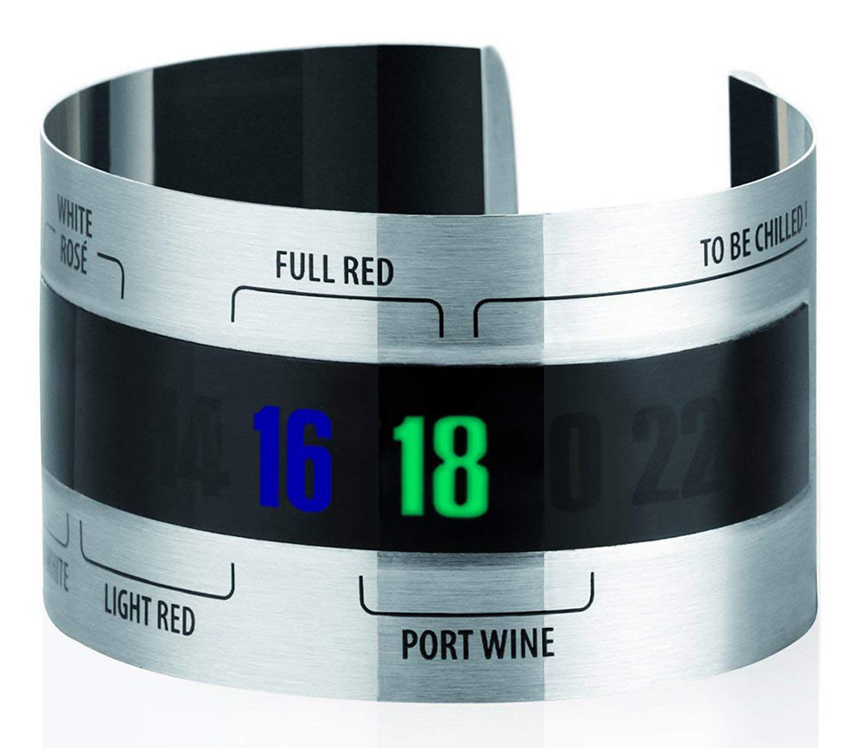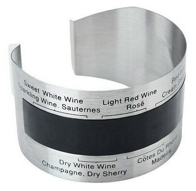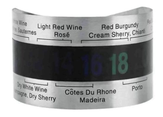 ظهر مقياس حرارة على شكل سوار يُلبس على زجاجة مؤخرًا نسبيًا واكتسب بالفعل شعبية بين خبراء المشروبات الكحولية الجيدة نظرًا لسهولة استخدامه وتكلفته المعقولة وتصميمه الأنيق الجذاب.