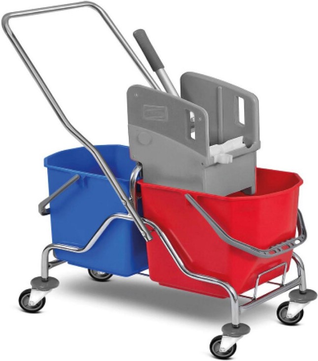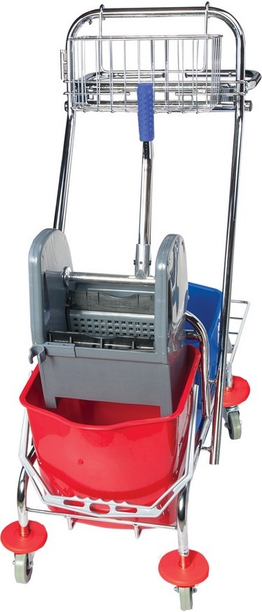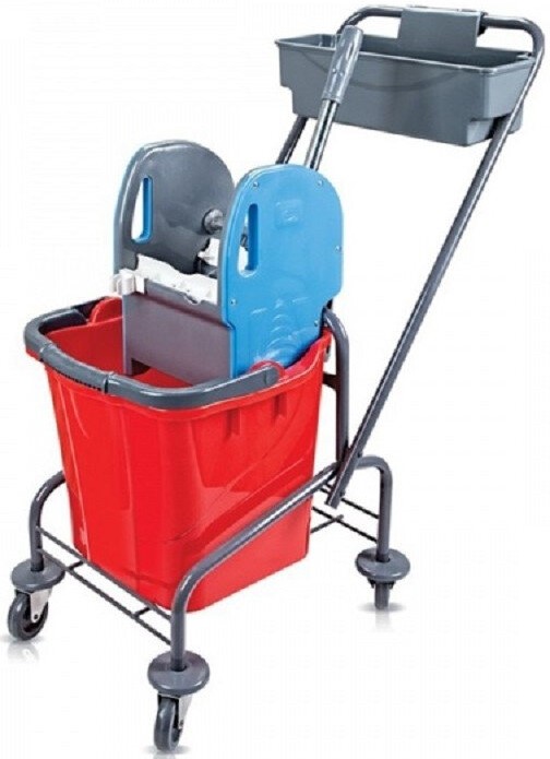 موديل معدني به دلاء كبيرتان بألوان مختلفة وعصارة ميكانيكية. سوف تتناسب الأبعاد الصغيرة بسهولة حتى مع المساحات الصغيرة ، بما في ذلك المستودعات والمحلات التجارية والمخازن. تسمح لك الصينية الكبيرة الواسعة للمنظفات بوضع الأشياء الصغيرة الضرورية (خرق ، فرش ، إسفنج ، إلخ) بداخلها. يقع المقبض المعدني فوق حوامل الكيس ، مما يجعل من الممكن تحريك المنصة بأكبر قدر ممكن من الراحة. متوسط السعر: 16728 روبل.