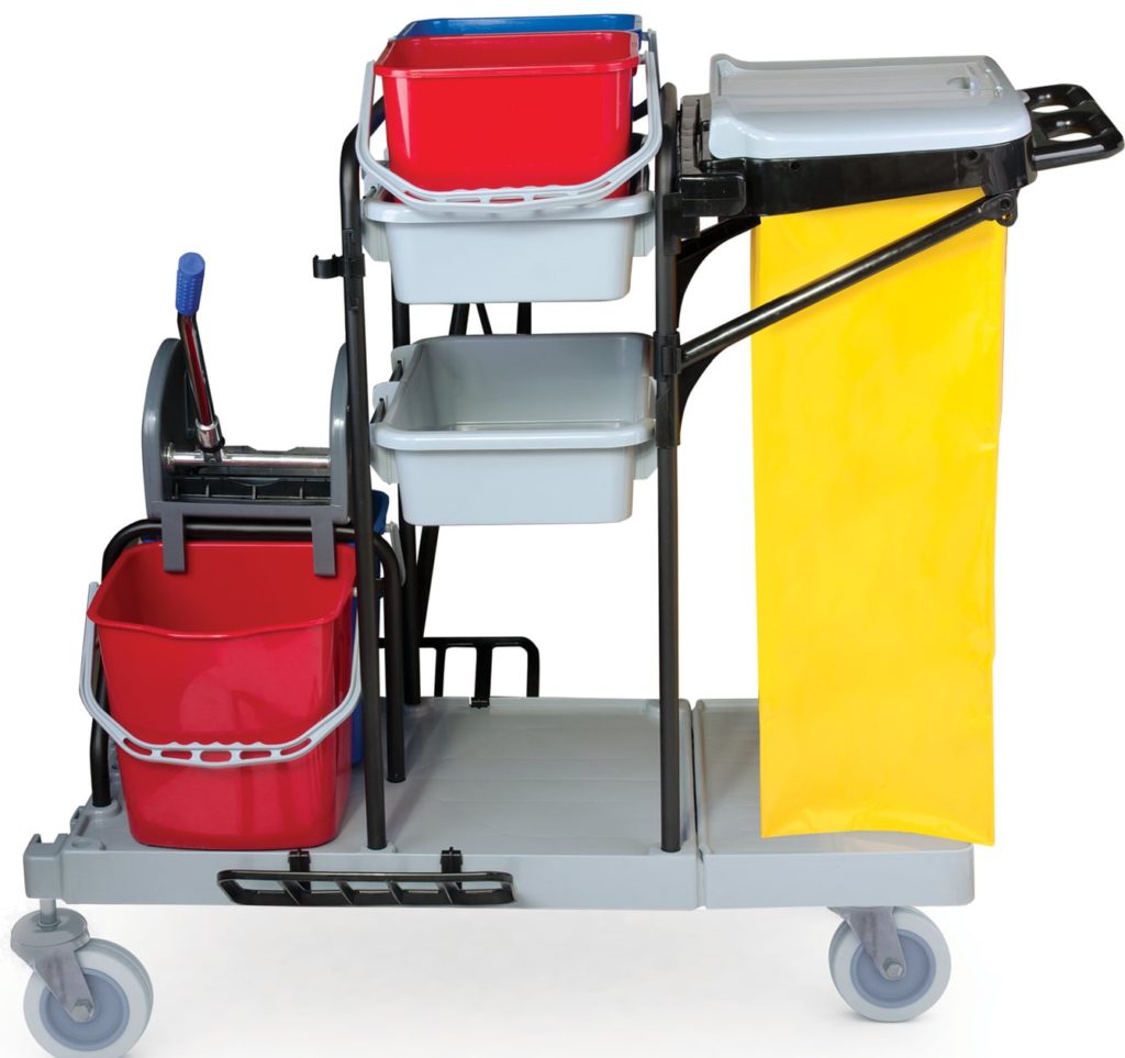 عربات التنظيف عبارة عن منصة مسطحة مصنوعة من الفولاذ أو البلاستيك ، توجد عليها حاويات وصواني وأرفف للإكسسوارات. تستخدم في المعالجة الجافة والرطبة وخدمة الغرف (توصيل أغطية السرير والمناشف).