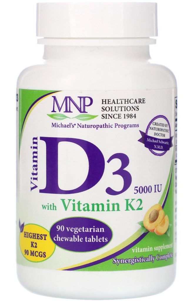 يحتوي المركب التآزري ، المصنوع في شركة عائلية لمايكل شوارتز ، على الكمية اليومية اللازمة من الفيتامينات D3 و K2. المنتج معبأ في 90 قرصًا نباتيًا للمضغ في قوارير فردية.