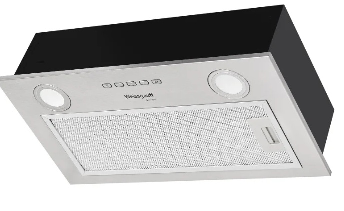 الأجهزة المنزلية المزودة بتحكم ميكانيكي بضغطة زر وإضاءة هالوجين مدمجة في الخزانة. الجسم (الحافة ، اللوح) من الفولاذ المطلي باللون الأسود. يوجد صمام مانع للرجوع يمنع دخول هواء العادم إلى المطبخ من خلال الشفاط عند تشغيله. يتم الضبط باستخدام زرين على الجانب الأمامي من الزاوية اليمنى. هناك نوعان من المصابيح المتوهجة ومحرك واحد.
