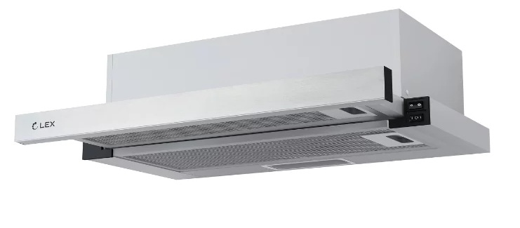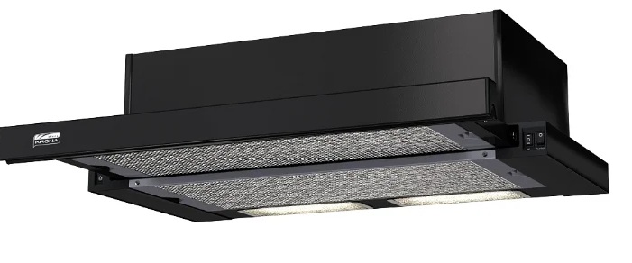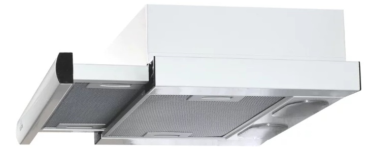 معدات مزودة بفلتر شحوم ، وضعي تشغيل (إزالة ، دوران) ، ونظام تحكم ميكانيكي (زر ضغط) وإطار مدمج في الخزانة. بفضل لوحة الشفط القابلة للسحب ، يسمح لك التصميم بزيادة مساحة منطقة الشفط فوق سطح العمل ، وبالتالي تقليل درجة تلوث الهواء في المطبخ.