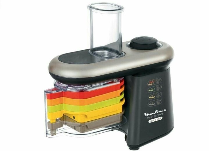 قاطع متعدد الوظائف مع 5 فوهات (شرائح ، شفاطات ، 2 مبشرة مختلفة). الشفرات حادة جدًا ، ولكنها في الوقت نفسه آمنة بدرجة كافية ، يمكنها بسهولة التعامل مع قدر كبير من الأعمال المختلفة. قوة 280 واط. الأبعاد: 26x36.8x39 سم ، الوزن: 2.7 كجم. ضمان المصنع هو سنتان. متوسط التكلفة: 14589 روبل.