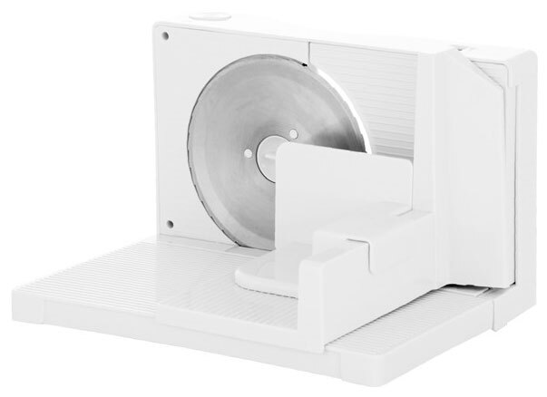 قطاعة كهربائية مع عملية مستمرة. يتضمن 1 سكين.أقصى سمك للقطع 15 مم. هذا يجعل من الممكن استخدام الشرائح المعدة للتجفيف في مجففات الملابس. يوجد حامل للمنتجات ، بالإضافة إلى صينية تقطيع. من الممكن تعديل سماكة القطع في العملية. قوة 100 واط. عمر الخدمة 7 سنوات. التكلفة: 3039 روبل.