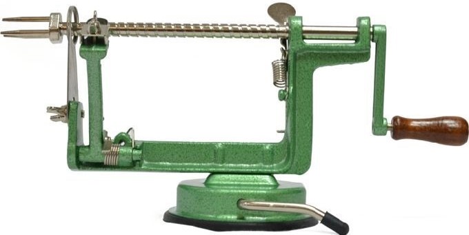 يقطع التفاح إلى شرائح متساوية. تتيح لك القاعدة غير القابلة للانزلاق معالجة كمية كبيرة من المواد الخام بسرعة. شكل القطع: حلزوني. جزء القطع مصنوع من الفولاذ المقاوم للصدأ. الطول: 28 سم ، العرض: 24 سم ، الارتفاع: 10.5 سم ، بعد الاستخدام ، الجهاز سهل التنظيف والتخزين. السعر: 3000 فرك.