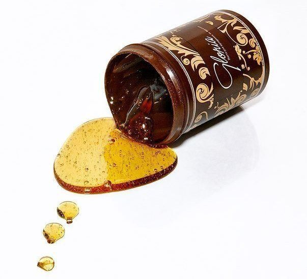 معجون السكر هذا مخصص للاستخدام المنزلي مباشرة.أونا لها لون ذهبي جميل ورائحة حلوة لطيفة - إنها سهلة وبسيطة للعمل معها. بعد التسخين في الميكروويف لمدة 10 ثوانٍ ، يتم التقاط المنتج تمامًا بملعقة وينزلق برفق على الجلد.