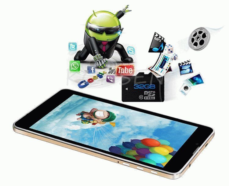 الوصول إلى الإنترنت: Wi-Fi ، وحدة 3G مدمجة ، تدعم بطاقتي SIM ، وملاح GPS وخيارات الهاتف المحمول. يحتوي الصندوق على مفاجأة - مصد سيليكون أخضر لجهاز لوحي من النينجا.