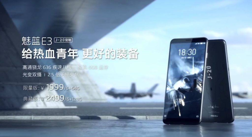 الآن الأكثر إثارة للاهتمام. بالإضافة إلى الألوان الثلاثة الرئيسية ، هناك أيضًا إصدار محدود من Meizu E3 J-20 Edition. تم إصداره تكريما للمقاتل الصيني Chin Do j-20.