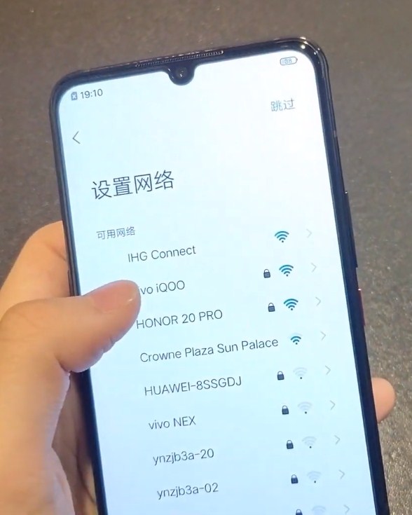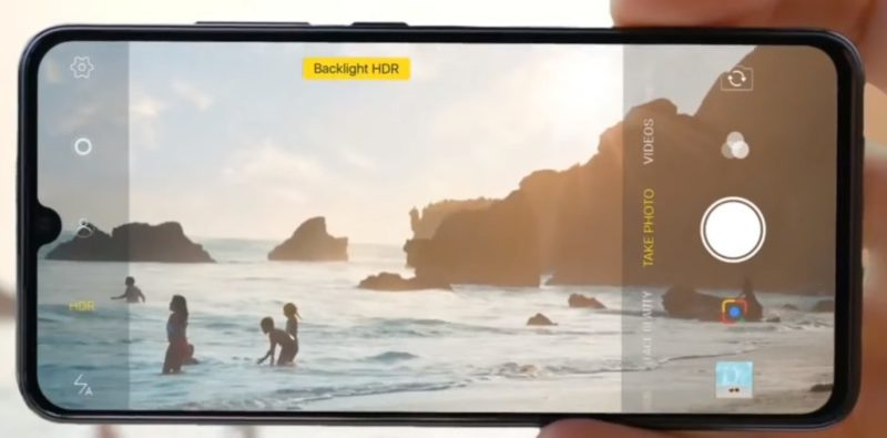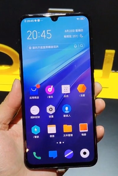 يتكون الجانب الأمامي للجهاز من شاشة كبيرة تشغل ما يقرب من 83.9٪ من المساحة الصالحة للاستخدام ، وإطارات الشاشة ، وكاميرا أمامية على شكل قطرة ماء ، ومكبر صوت فوق الكاميرا ، ومستشعرات للضوء والقرب.