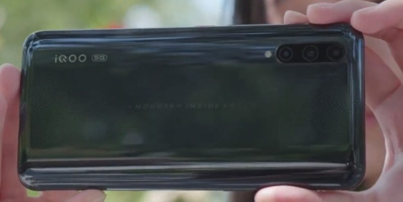 يوجد على الغطاء الخلفي الجميل كاميرا رئيسية من ثلاث وحدات وفلاش أسفلها. يوجد شعار iQOO في الأسفل (يحتوي إصدار Vivo iQOO Pro 5G على أيقونة 5G أعلى الشعار). حتى لا ينسى المستخدمون ومن حولهم أن لديهم وحشًا حقيقيًا أمامهم ، صنع المصنعون النقش "MONSTER INSIDE" في المنتصف ، والذي يتوهج مع الثنائيات.