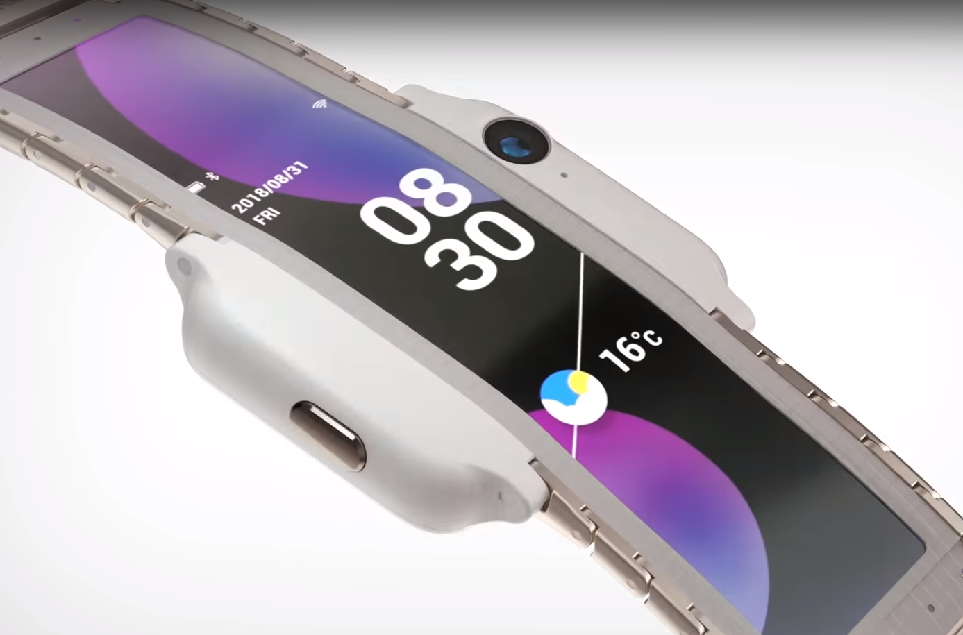 تلعب الشاشة دورًا رئيسيًا في هذه الساعة - فهي قادرة على الانحناء حول اليد ، مما يتيح لك جعلها كبيرة بما يكفي ، فضلاً عن فتح الكثير من الاحتمالات الأخرى. صحيح ، حتى الآن لا يُعرف عنه شيئًا تقريبًا (فقط أنه ينحني ولديه مصفوفة OLED). ومع ذلك ، وفقًا للصور ومقاطع الفيديو من الشبكة ، يمكننا أن نستنتج أن تفاصيل العرض جيدة. ولكن حتى هنا كانت هناك بعض الخلافات بين المستخدمين على الشبكة ، وكان السؤال الأكثر شيوعًا هو الشك حول متانة الشاشة ، أي كم عدد امتداد الانثناء المصمم من أجله.