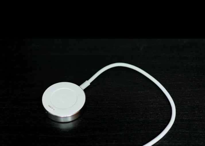 يتم توصيل الشاحن مغناطيسيًا بالجزء الخلفي ويحتوي على موصل USB قياسي للتوصيل بجهاز كمبيوتر أو شاحن.