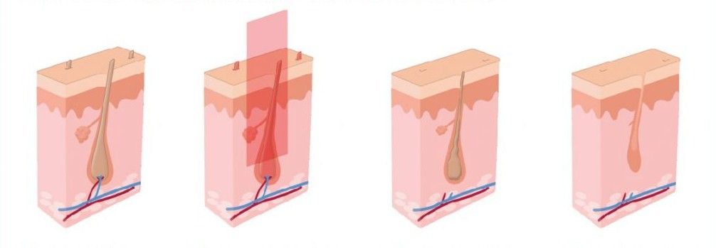 Na lidském těle jsou chloupky, které jsou v různých fázích vývoje a růstu. Laserový paprsek může zničit pouze zralé folikuly. Po nějaké době dozrávají nové cibule a podle toho z nich raší vlasy.Z tohoto důvodu je pro dosažení výsledku nutné projít několika sezeními a v určitém intervalu (plán je nastaven individuálně s ohledem na všechny vlastnosti).